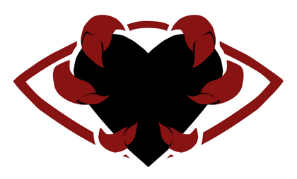 Black - Darkness is feared by many. There's not necessarily a reason to the fear of the dark itself without outside factors such as what's in it, but people do fear it still because of what it's associated with anyway.Red - All the common stuff, blood, gore--those are things that unite our bodies as being all similar, in a way. Our physical bodies all have blood. Symbolises fear, but also symbolises love, which in context is love of one's self and others like you. Also can symbolise anger at those who reject you.White - Bones and ghosts, scary things like that which are still related to people in general, but also is a kind of neutral colour. A combination of all colours in the visible spectrum of light, representing unity in difference.Heart - Symbol of love, coloured black to represent love of those things that commonly are feared via association, though might not always have the need to be.Claws - Grasping the heart and as monstrous as ever, obtaining and holding and protecting the love that the feared deserve. Red to represent love but also anger directed outward as protection. No marks on the heart and no injury to it despite the claws, because even those with razor sharp talons can use them tenderly.Eye - Involved in common horror tropes, but also represents the noticing and awareness of the way society goes about the "other", and due to its placement that aligns the heart as the pupil/iris, watching over those society deems "scary" with loving intent, terror-inducing traits and all. Red for the same reason as the claws.Alternate, simplified symbols below.
